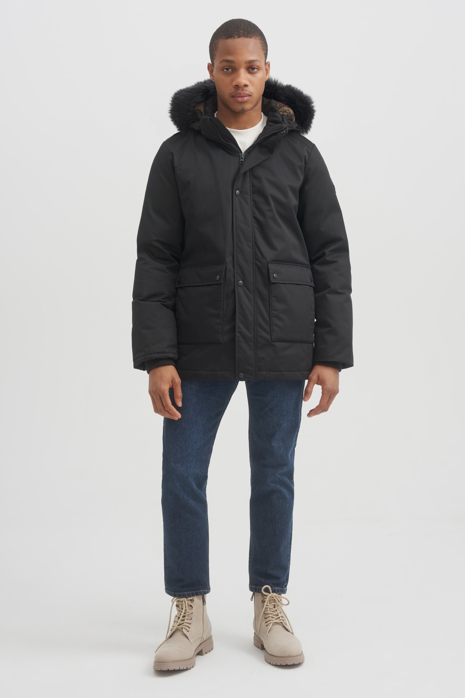 - Capuchon détachable avec bordure en fausse fourrure de raton laveur