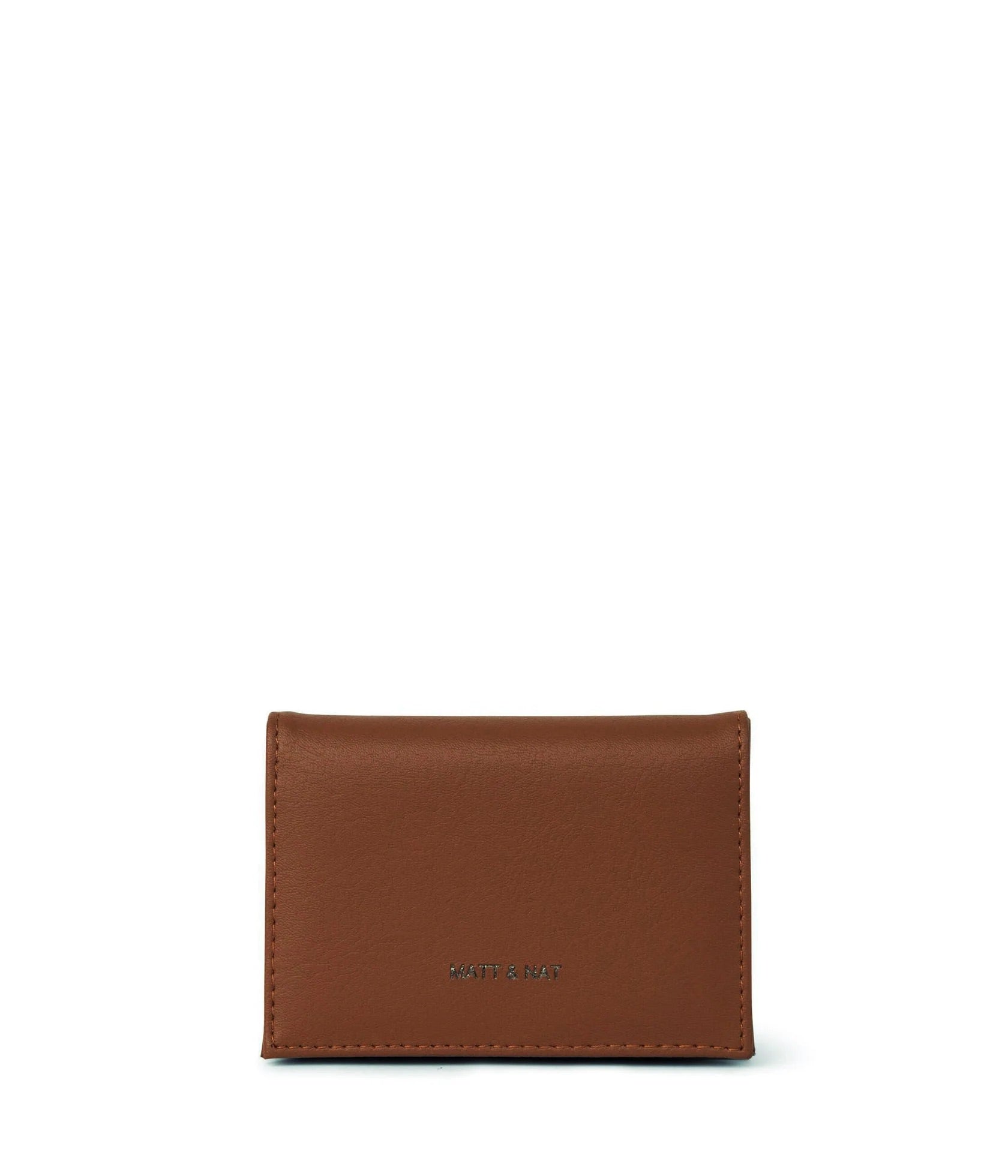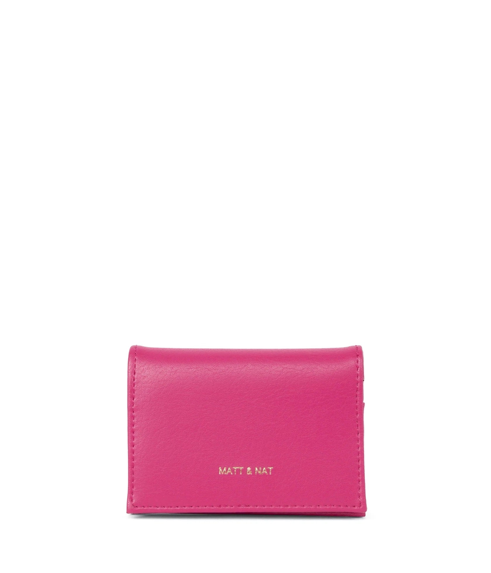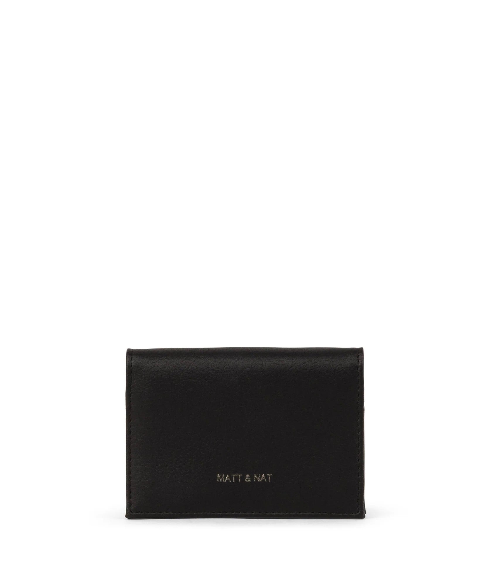Portefeuille plié avec fermeture à pression, 1 fente pour carte à l'extérieur et 6 fentes pour cartes à l'intérieur.