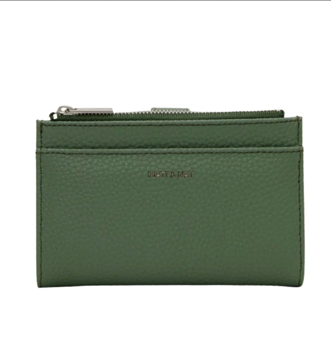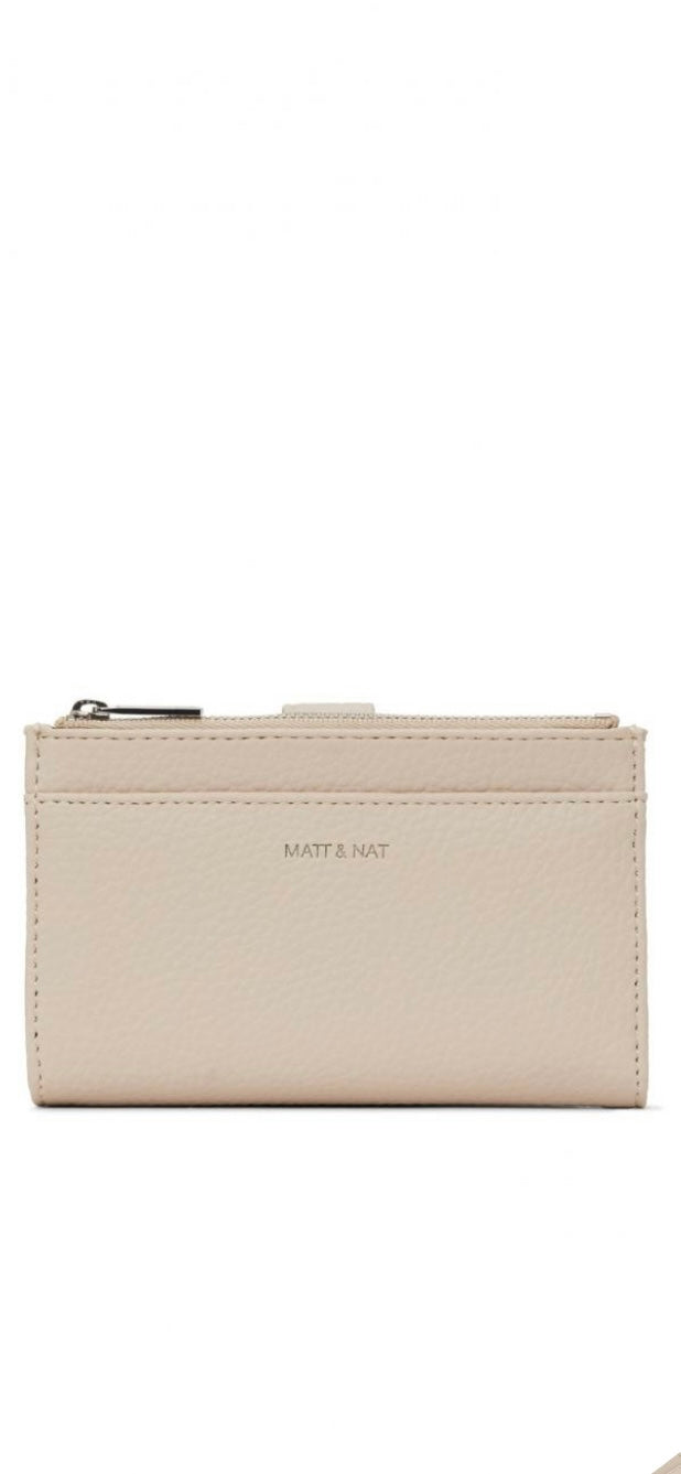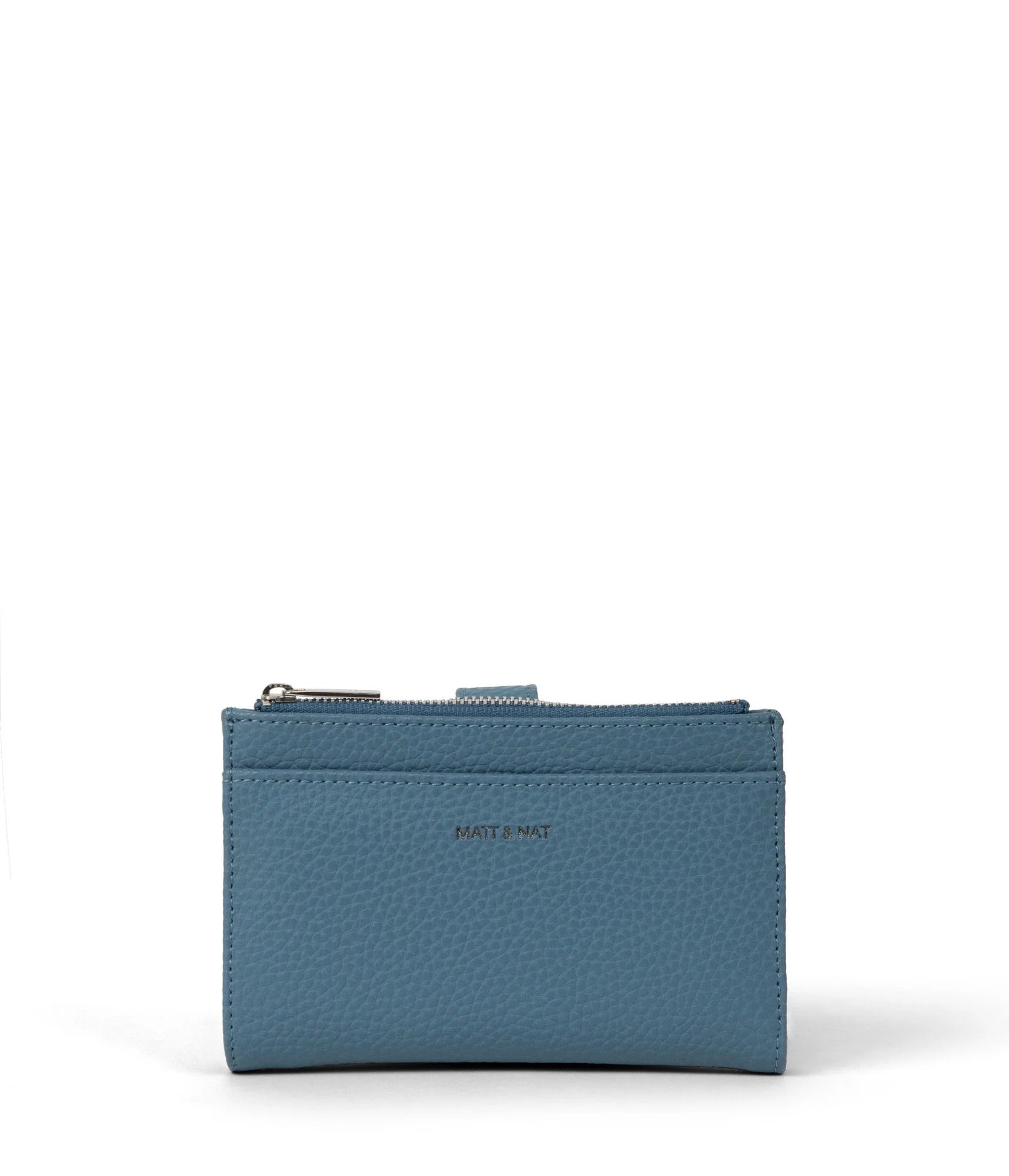 Mini portefeuille avec fermeture à pression et poche à monnaie zippée. Poche avant.